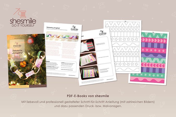 PDF-E-Books von shesmile: Mit liebevoll und professionell gestalteter Schritt-für-Schritt Anleitung (mit zahlreichen Bildern) und dazu passenden Druck- bzw. Malvorlagen.