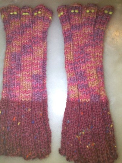Hier haben wir noch ein paar wunderschöne Pulswärmer mit kleinen Perlen als Applikation.