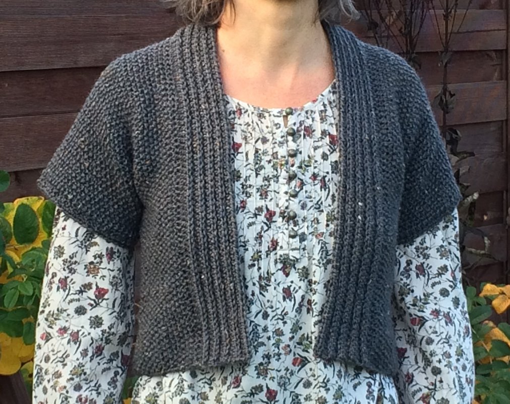 Pur designter, lässiger Bolero im Landhausstil aus einem winterwarmen Mix aus Wolle und Viskose.