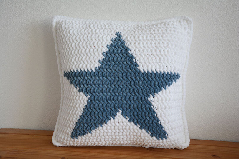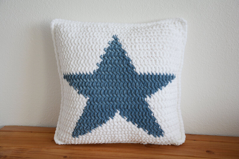 Mit der Häkelanleitung kannst du ganz einfach das Stern Kissen (40 x 40 cm) selber häkeln. Ob für dich selbst oder als Geschenk zu Geburtstag, Weihnachten oder Einweihung. Gehäkelt aus myboshi Samt ist das Kissen kuschelig weich
