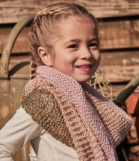 Lana Grossa "Shades of Merino Cotton" (50% Baumwolle, 50% Schurwolle, LL ca 760 m/200 g): ca 200 g Altrosa/Graubeige/Umbra/Dunkelbraun Fb 410; addi-Stricknd 7 mm.