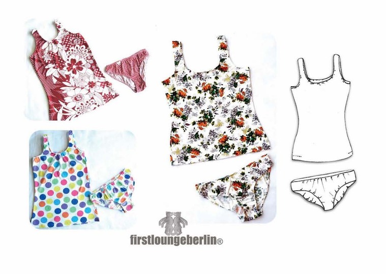 Verwendete Materialien: Alle dehnbaren bzw. bi-elastischen Gewebearten: Baumwolljersey, Viskose/Elasthan, Baumwolle/Spandex, Viskose/Lycra, feiner Strick, Mikrofaserjersey, Spitzenjersey, Baumwoll/Elasthan, und viele andere bi-elastisches Gewebe. Gummiband bzw. Unterwäscgegummi.
