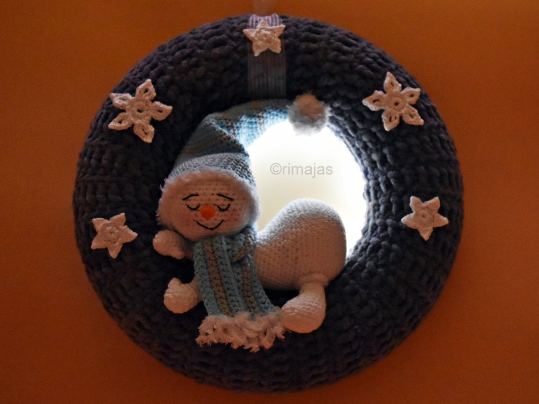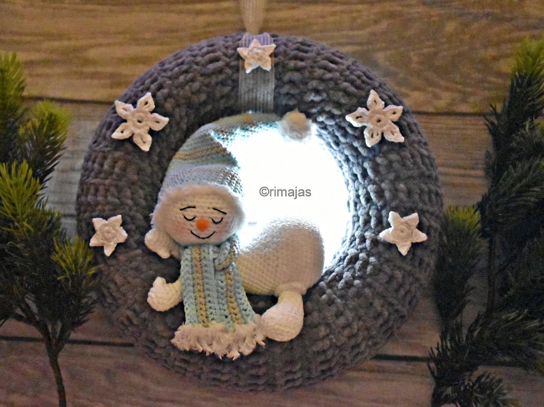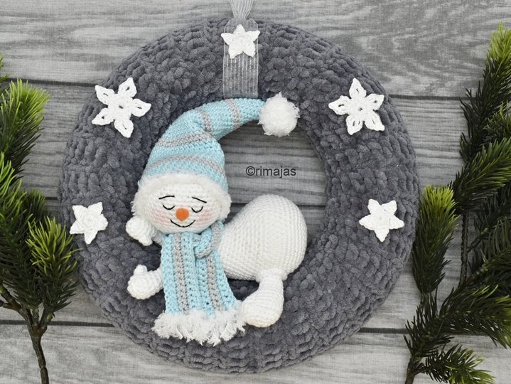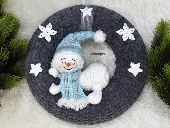 In dieser Anleitung wird dir erklärt, wie du den Schneemann mit dem Türkranz und den Sternen häkelst.