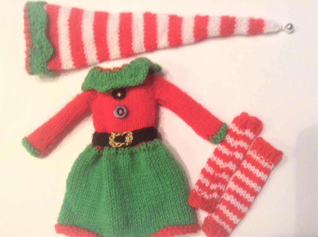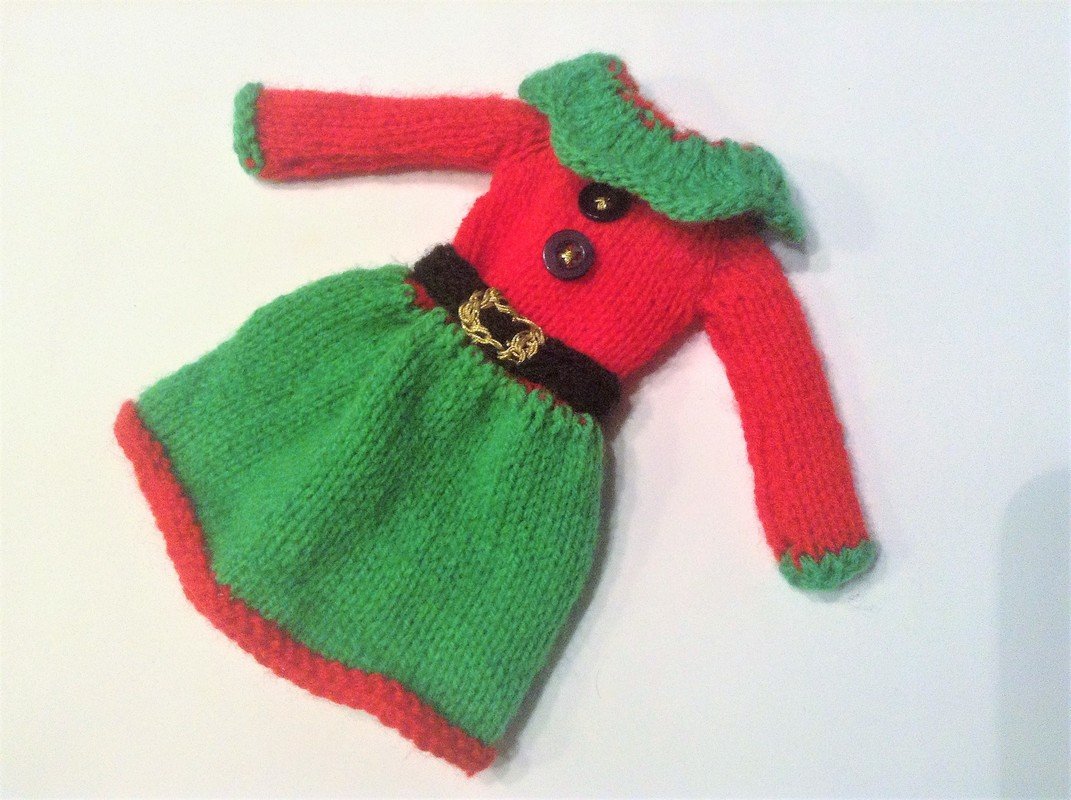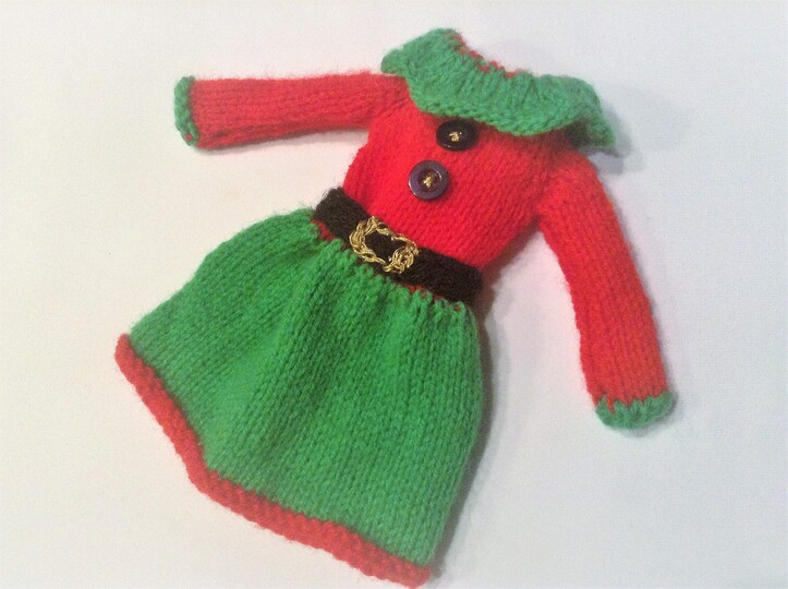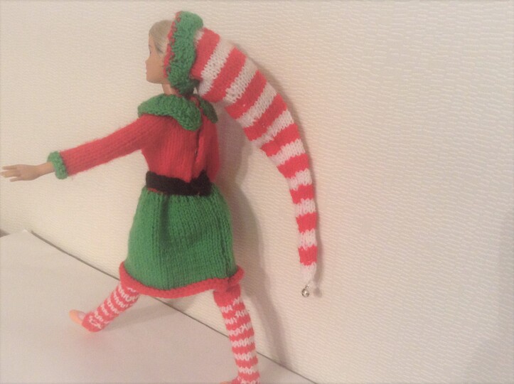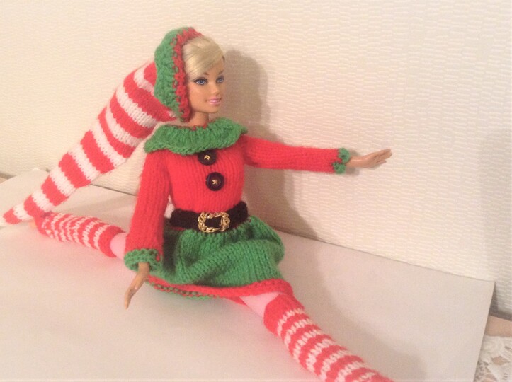 Eine Strickanleitung für Modepuppen, es werden ein Kleid im Raglanschnitt, eine Zipfelmütze und Stulpen ausführlich beschrieben.