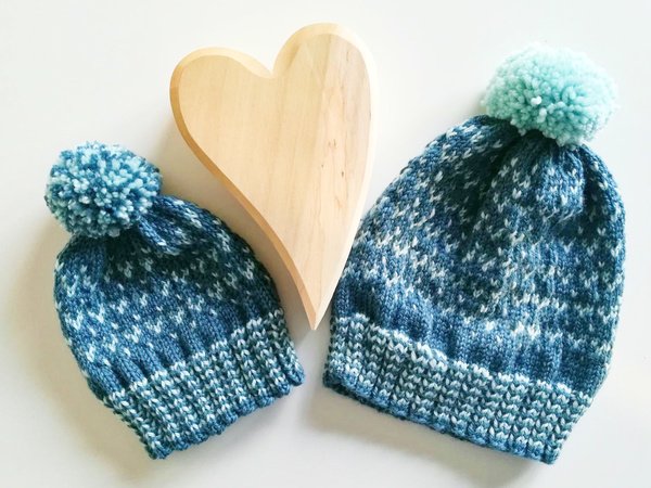 „Herzilein“ ist eine tolle Wintermütze, die ruckizucki aus relativ dicker Wolle gestrickt wird. Das einfache zweifarbige Muster ermöglicht das Üben und Ausprobieren der zweifarbigen Stricktechnik. Die Anleitung erklärt alles Schritt für Schritt und ermöglicht das Stricken für Babys, Kinder, Teens und Erwachsene.