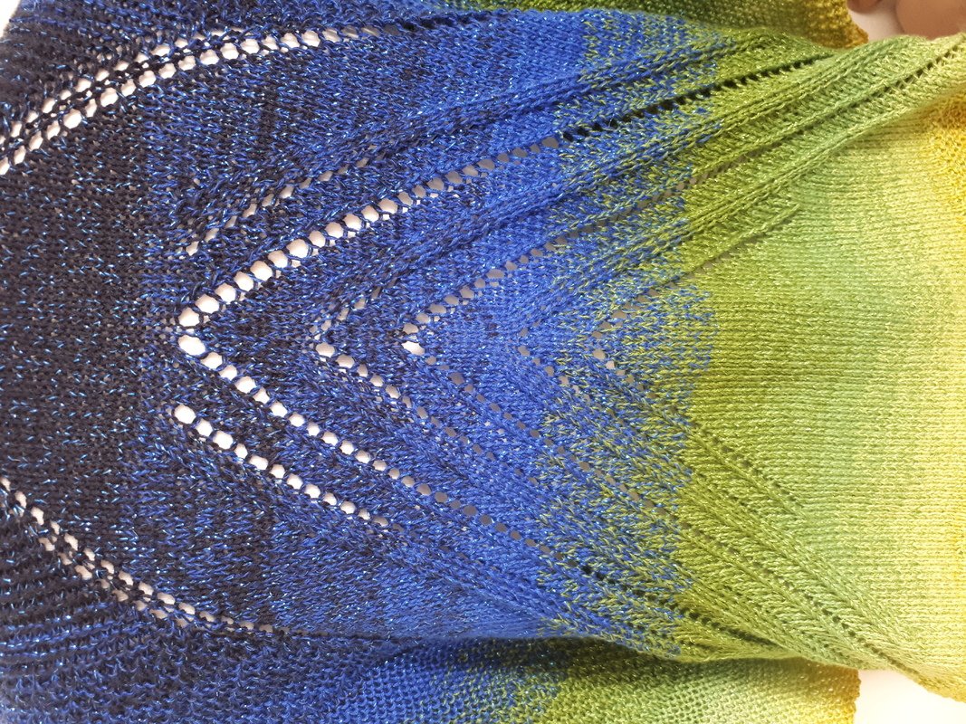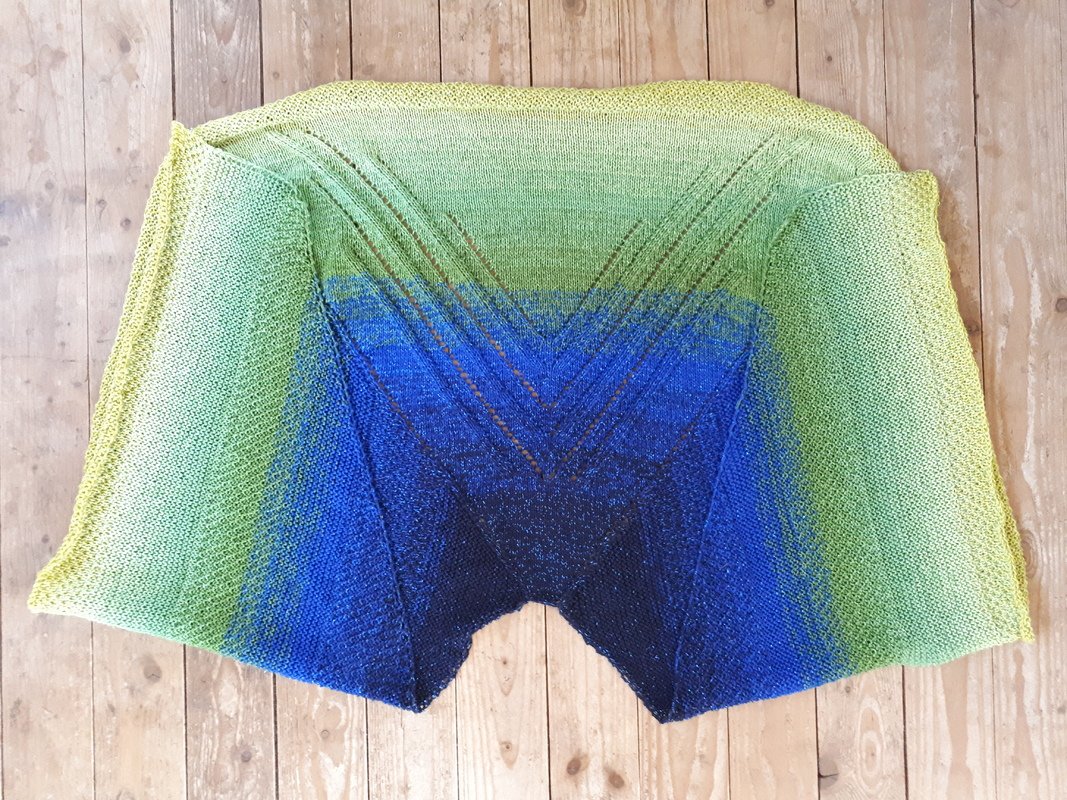 Für das Grün/Blaue 1000m 4 fädiges gefachtes Garn von Drachenstein verwendet.