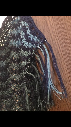 Materialverbrauch ist abhängig von der größe des Schals. Das Modell hier, ca. 1300 m mit Haken 3,5.