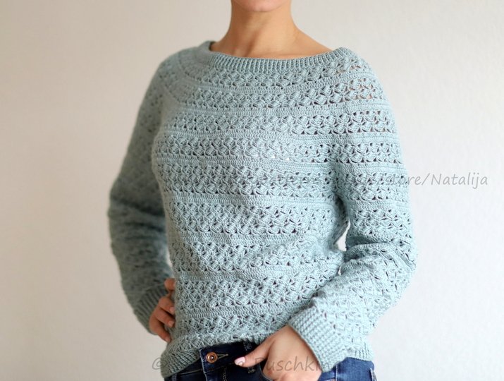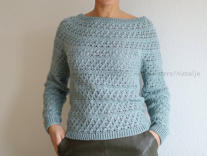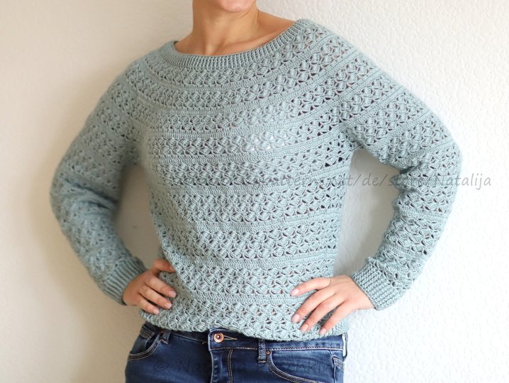 Verkauf der von Dir hergestellten Pullover ist möglich: Du darfst die Artikel, die Du mithilfe meiner Anleitung zum Häkeln von Pullover gefertigt hast, in beliebiger Stückzahl gewerblich verkaufen. Bitte den Hinweis: „Angefertigt nach dem E-Book von Natalija Puschkina https://www.crazypatterns.net/de/store/Natalija“ dazusetzen.