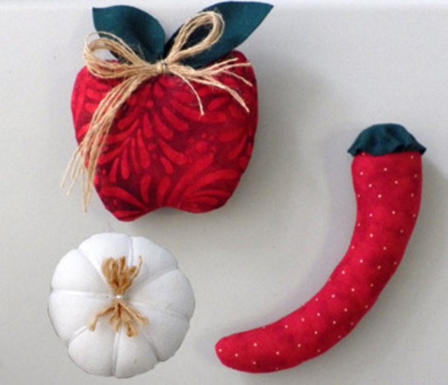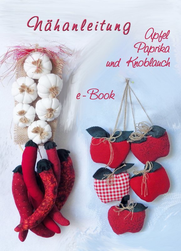 Eine bebilderte Schritt-für-Schritt-Anleitung inclusive Schnitt beschreibt die genaue Vorgehensweise zum Nähen von Apfel, Knobi und Paprika. Ein e-Book für Anfänger und Fortgeschrittene.