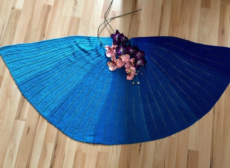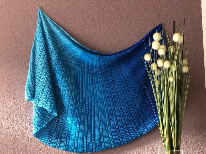 Hier wird mit verkürzten Reihen gearbeitet und effektvoll mit Lochmusterreihen unterbrochen. Und fast im Handumdrehen ist euer neues Tuch fertig.