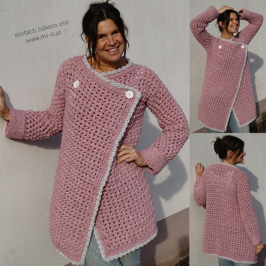 Die Anleitung ist einfach Schritt für Schritt mit genauer Skizze, Maßen und Häkelschriften erklärt, die darunter auch genau Reihe für Reihe in Worten beschrieben ist. Die verwendeten Maschenarten sind auch genau und mit Bildern erklärt. Die Weste ist ganz leicht für alle Größen anzupassen.