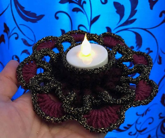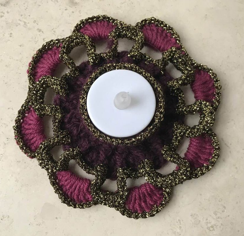 Ich habe den Teelichthalter "Kerzentraum" aus Restwolle gearbeitet