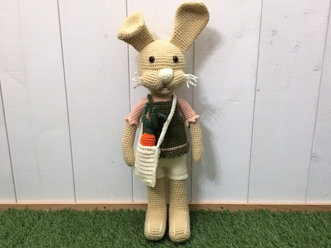 Mit der angegebenen Wolle wird die Figur je nach Häkelgewohnheit ca. 40 cm groß, (ohne Ohren).