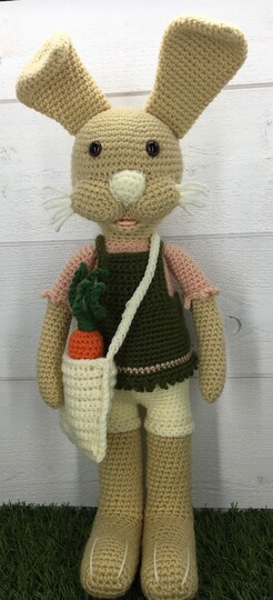 Hasi Hase ist eine fröhliche und ausgeglichene Hasendame. Sie liebt das Shoppen und dann am liebsten Karotten!