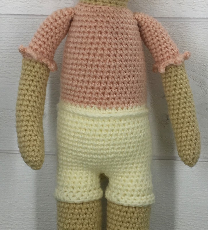 Der Körper wird vom Fuß ausgehend bis zum Hals durchgehend gehäkelt. Der Kopf und die anderen Teile werden angenäht. Alle Schritte sind in der Anleitung beschrieben.