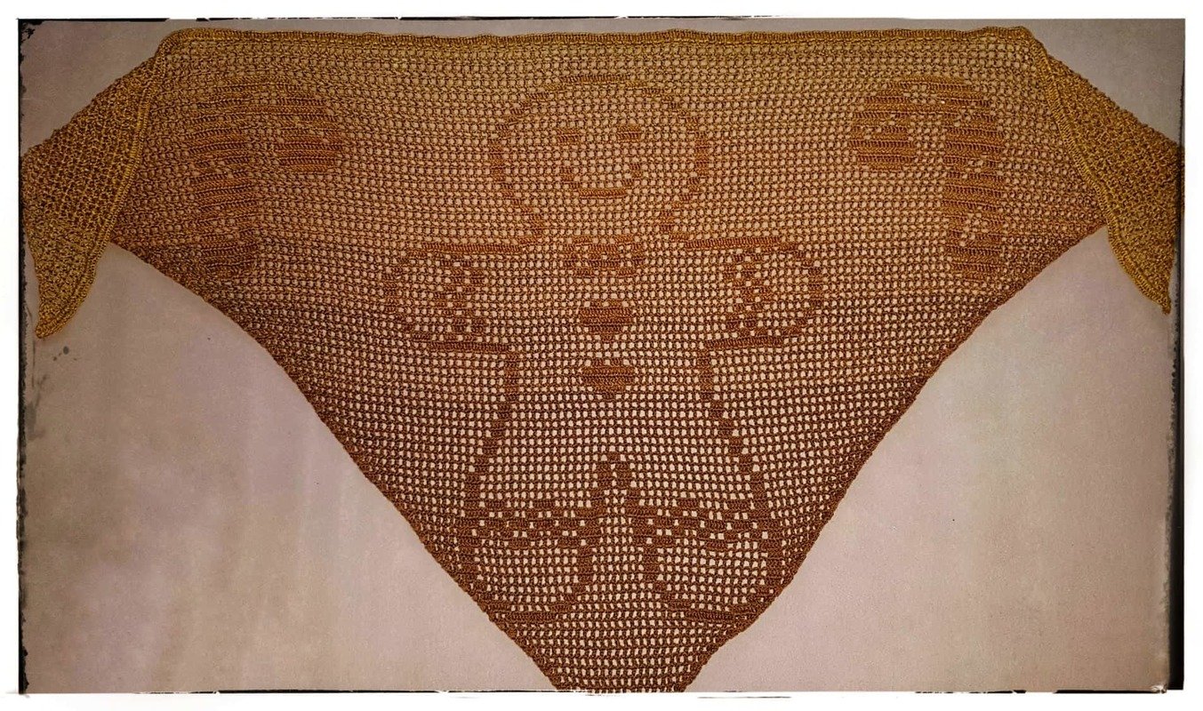 Der kleine Gisbert "Gisbert" wurde mit ca. 900 / 1120 Metern LL sowie 3 fädigen Farbverlaufsgarn und einer 3er Nadel gehäkelt. Es hat die Maße: ca. 192 / 200 cm x 90 cm.