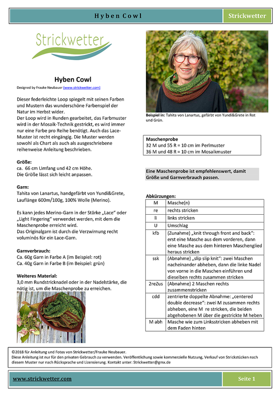 Maschenprobe erreicht wird. Beachtet bitte: Das Originalgarn ist durch die Verzwirnung recht voluminös für ein Lace-Garn. Bitte wählt also kein richtig "dünnes" Lace-Garn.