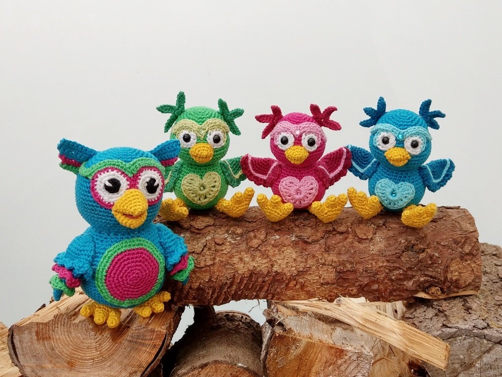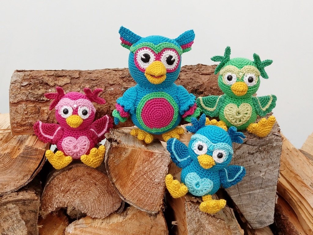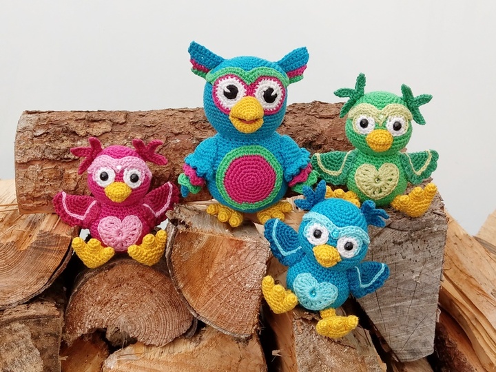 uhu uhu.... so ein bunter Haufen - da geht es Rund - die Eulenmama hat mit ihren 3 Babys jede menge um die Ohren. Der Nachwuchs ist nämlich ganz schön aufgeweckt und für jeden Schabernack zu haben.