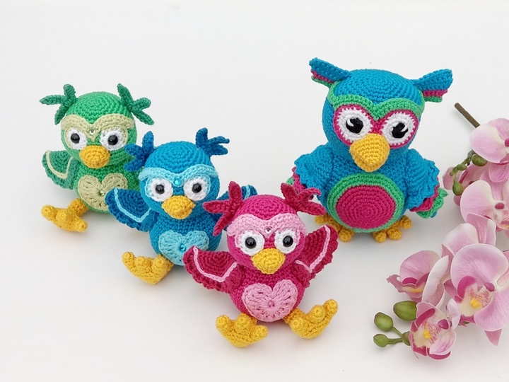 Auf insgesamt 28 Seiten und 99 Fotos erkläre ich Dir Schritt für Schritt die Nacharbeitung der abgebildeten Eulenbande. (Die Babys werden ca. 10 cm und die Mama ca. 15 cm groß)
