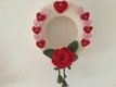 Dieser Kranz in Rot-und Rosa-Tönen mit vielen Herzen und einer wunderschönen roten Rose mit Rosenknospen kann als Tür- oder Wandkranz oder auch als stimmungsvoller Kerzenkranz dekoriert werden.
