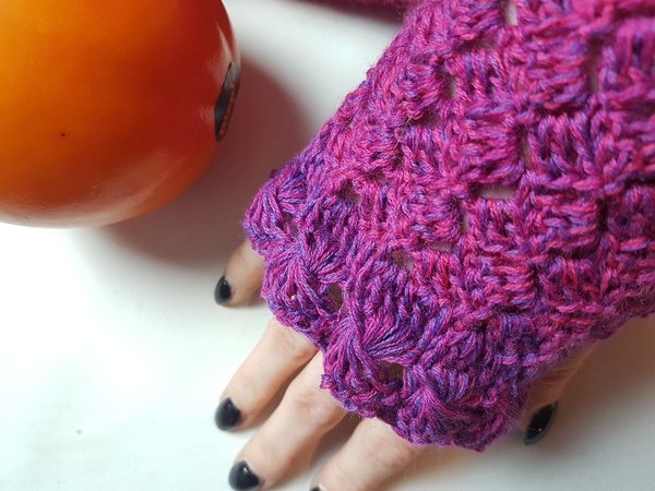 Das Rezept gegen kalte Hände- Armstulpen helfen. Ob aus Farbverlaufsgarn (Bobbel), oder anderem Garn, Du kannst alles benutzen. Das "Diamant" Muster wird, mit unsichtbarer Naht, in Hin-und Rückreihen gehäkelt. Den Abschluß macht das Muster "Windrad". Für einen guten Sitz sorgt das Daumenloch. Die ausführliche Anleitung mit 28 Bildern (Schritt für Schritt Fotostrecke), Texterklärung und drei Häkelschriften (am PC erstellt), zeigt Dir wie sie gehäkelt werden. Falls Du Fragen hast, antworte ich Dir zeitnah.