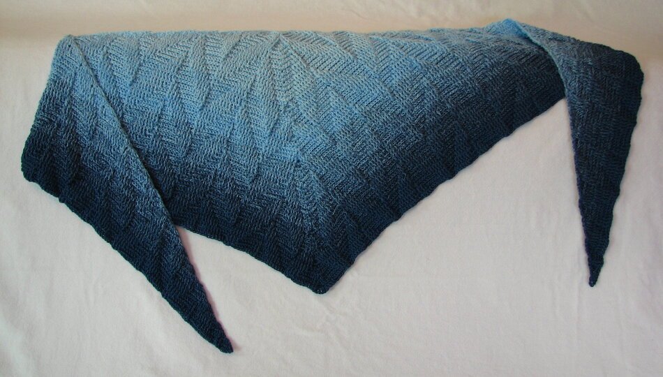 Mein Tuch "La Freccia" besteht aus Stäbchen, vorderen und hinteren Reliefstäbchen und hat dadurch einen leichten 3D-Charakter. Das Muster ist leicht zu häkeln. Die Form des Tuchs ist schmal und länglich. Es lässt sich in entsprechenenden Farben auch gut von Männern tragen.