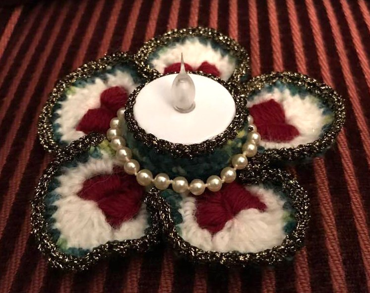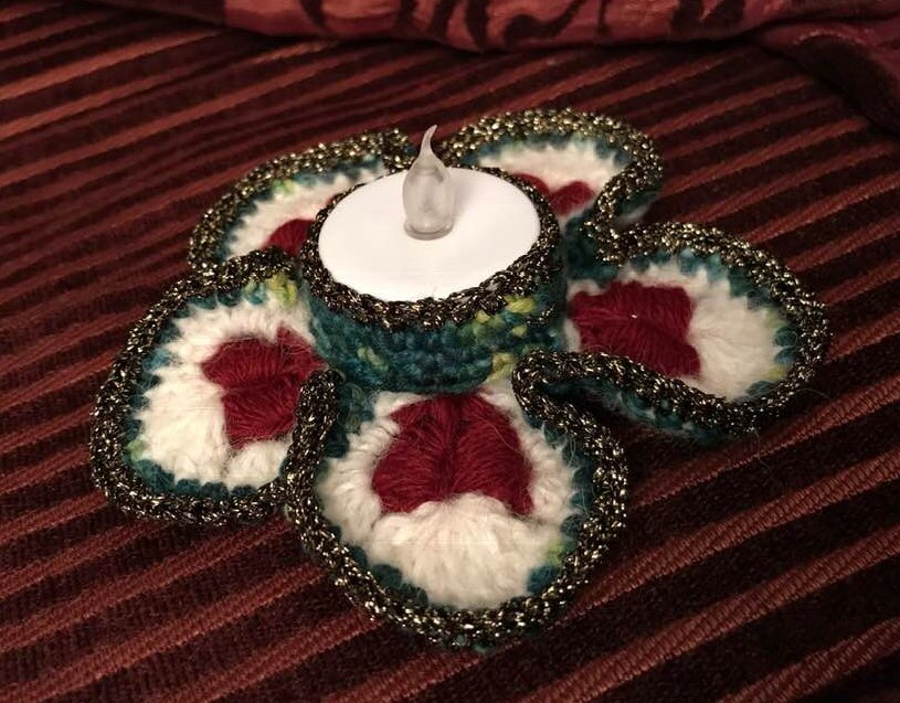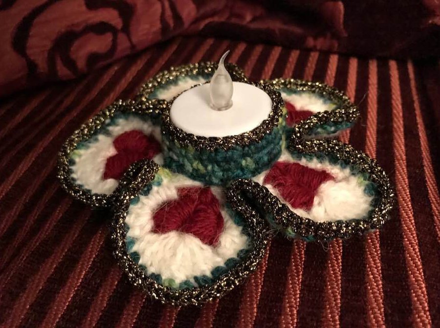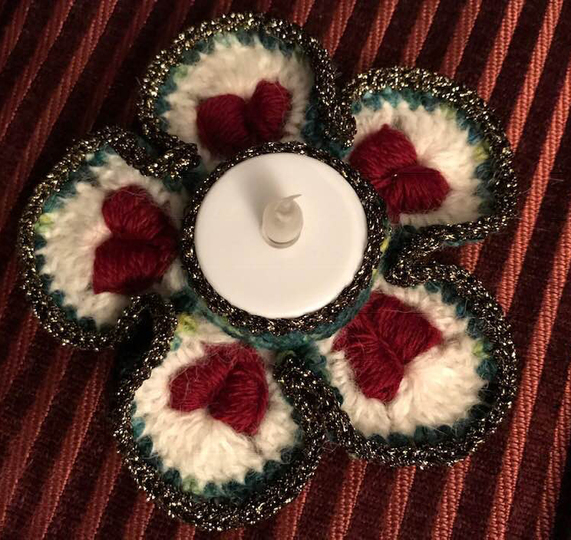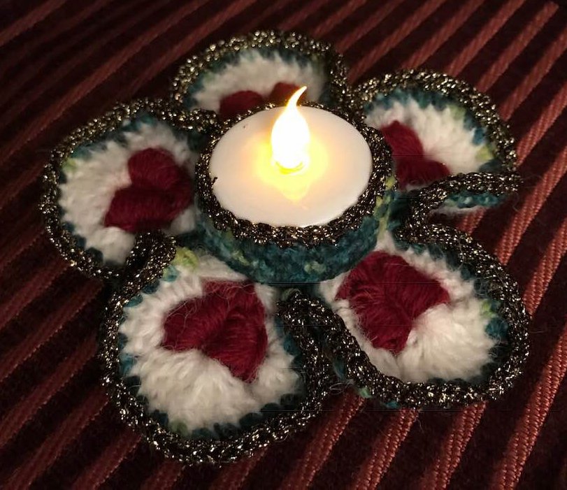 Der Teelichthalter "Heart of Gold" hat 5 Blütenblätter mit 5 plastischen Herzen und sieht allerliebst aus auf dem festlich gedeckten Tisch!