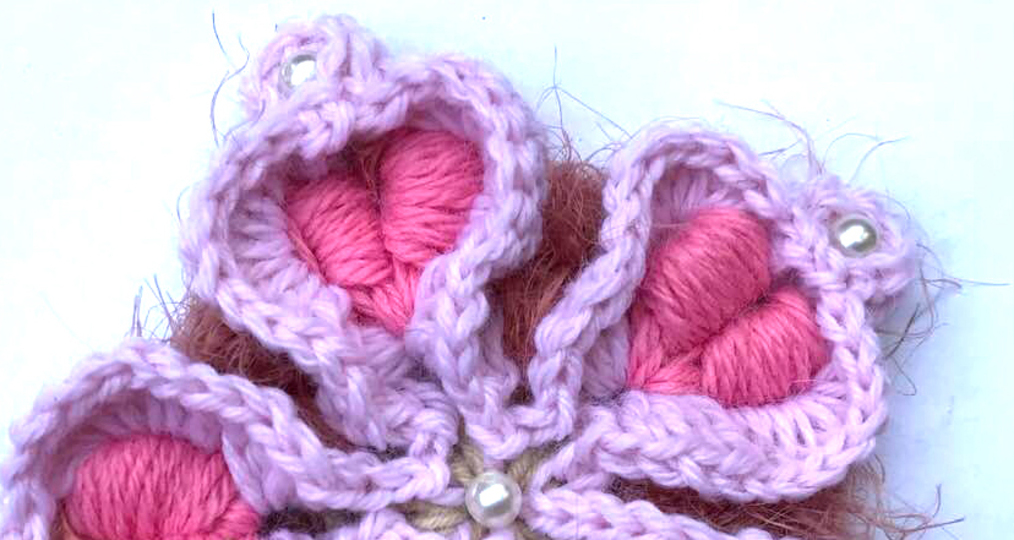 ..... für die Blume selben nehme ich 2 verschiedene Farben und noch eine Puschelwolle...für die letzte Runde...hier nehme ich auch eine etwas größere Häkelnadel damit der Flaum schön fluffig wird.