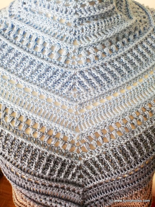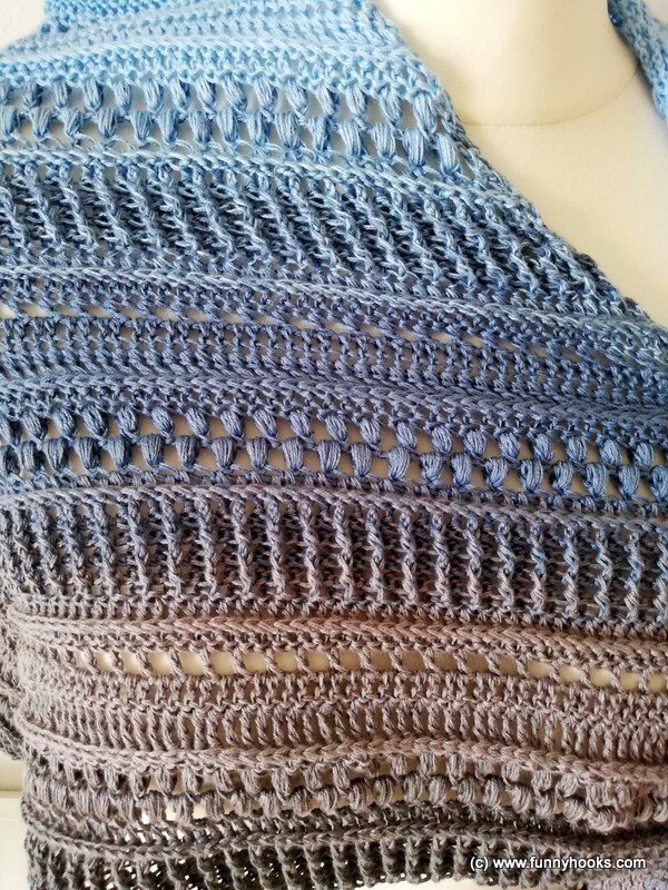 Das Tuch besteht aus sich wiederholenden, abwechslungsreichen Mustersätzen und ist einfach zu häkeln.