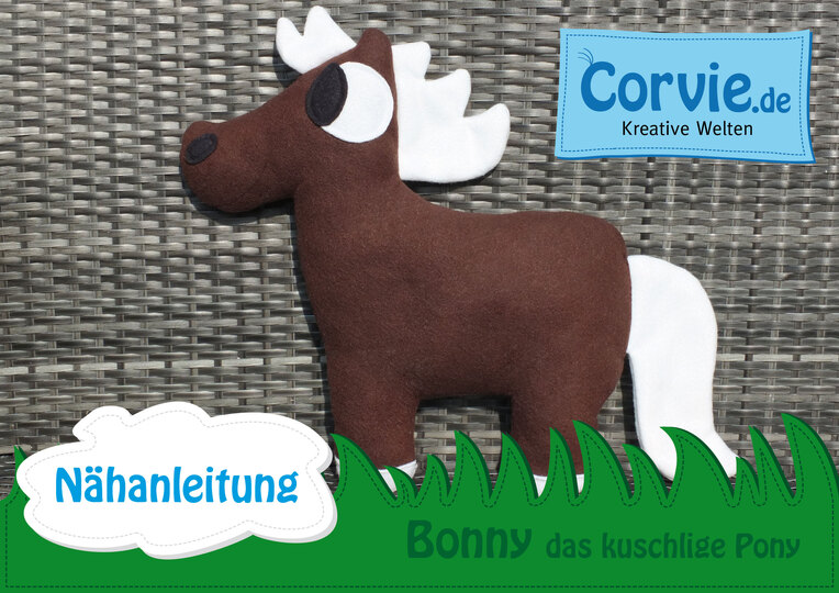 Bonny ist ein anschmiegsamer Gefährte, aus weichem Fleece-Stoff, der Problemlos auf dem heimischen Sofa gehalten werden kann und bei großen und kleinen Pferdebegeisterten für Freude sorgt. Mit dieser Anleitung kannst du den kuschlig bunten Sofakumpel ganz einfach selbst herstellen.