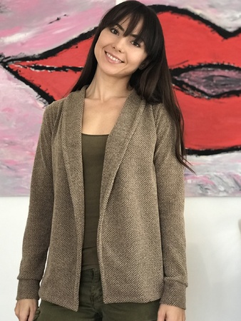Das Damen Schalkragen Shirt " Lady Anna" ist ein Taillierter Schnitt mit langen Ärmeln, geht bis zum Po und kann als Shirt oder auch als Cardigan/Strickjacke getragen werden.