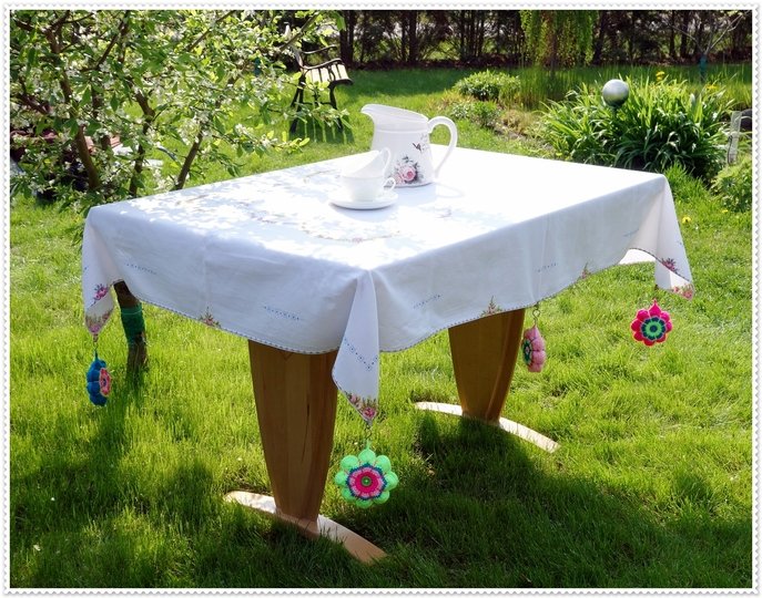 Schön und praktisch für den eigenen Garten. Aber auch ein ideales Geschenk für Garten- oder Balkonbesitzer: die Tischtuch-Beschwerer halten die Tischdecke fest. Man zwickt die hübschen Bommeln einfach an den Saum der Tischdecke und durch ihr Gewicht halten sie die Tischdecke auf dem Tisch.