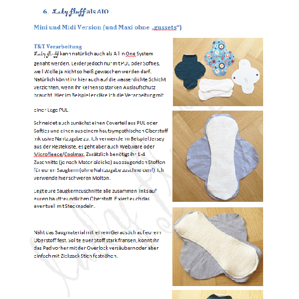 lady fluff ist die Komplettlösung für eure Periode, das Wochenbett, als Back-up zur Tasse oder bei leichter Inkontinenz. Sie kann als All in 2 System oder aber als All in one Lösung genäht werden, mit oder ohne Nässeschutz, mit PUL oder Wolle.