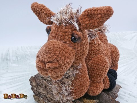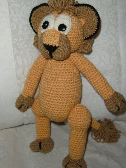 Mit Wolle der Nadelstärke 3-4 wird der Löwe ungefähr; 36cm hoch