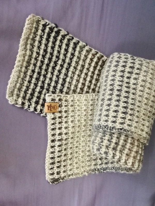 Deshalb musste jetzt passend zur Mütze die Anleitung für einen Loop her, ....und weil ich mir hab sagen lassen dass manche Männer nicht viel mit Loops anfangen können, gibt es auch noch einen Schal im gleichen Muster.