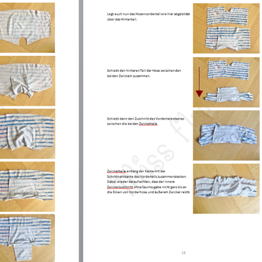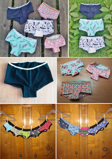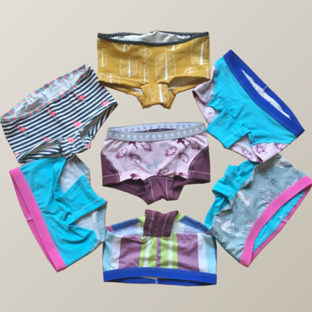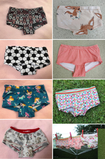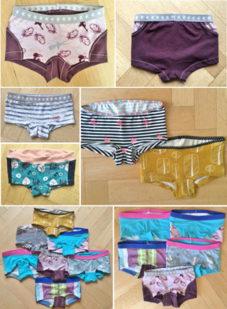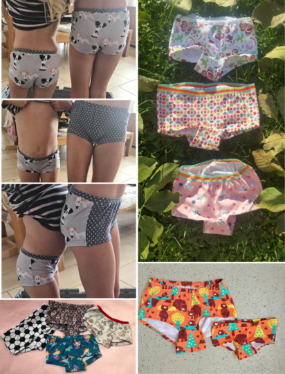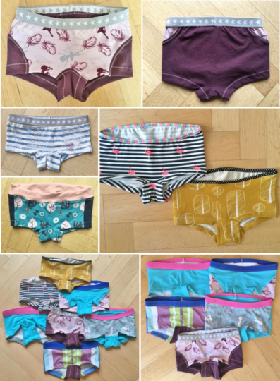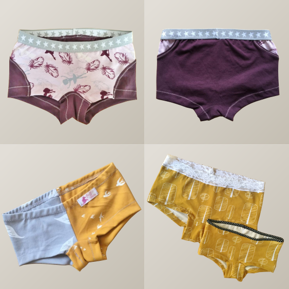 Miss fluffel ist eine sogenannte Boy-shorts, also eine Unterhose mit etwas längerem Bein für Mädchen. Sie kommt in den Doppelgrößen 74/80-170/176 und deckt so den gesamten Zeitraum zwischen Windeln und Erwachsenenalter ab. Der Schnitt sitzt bequem und bedeckt alles, was bedeckt werden soll. So blitzt auch nichts raus, wenn Mädel mal mit hochgerutschtem Rock kopfüber vom Klettergerüst hängt. Es gibt wie beim Bruder Mister fluffel diverse Teilungslinien und Variationsmöglichkeiten, die im eBook ausführlich vorgestellt werden. Miss fluffel ist perfekt, um kleine Jerseyreste zu verwerten und auch ein tolles Upcycling Projekt!