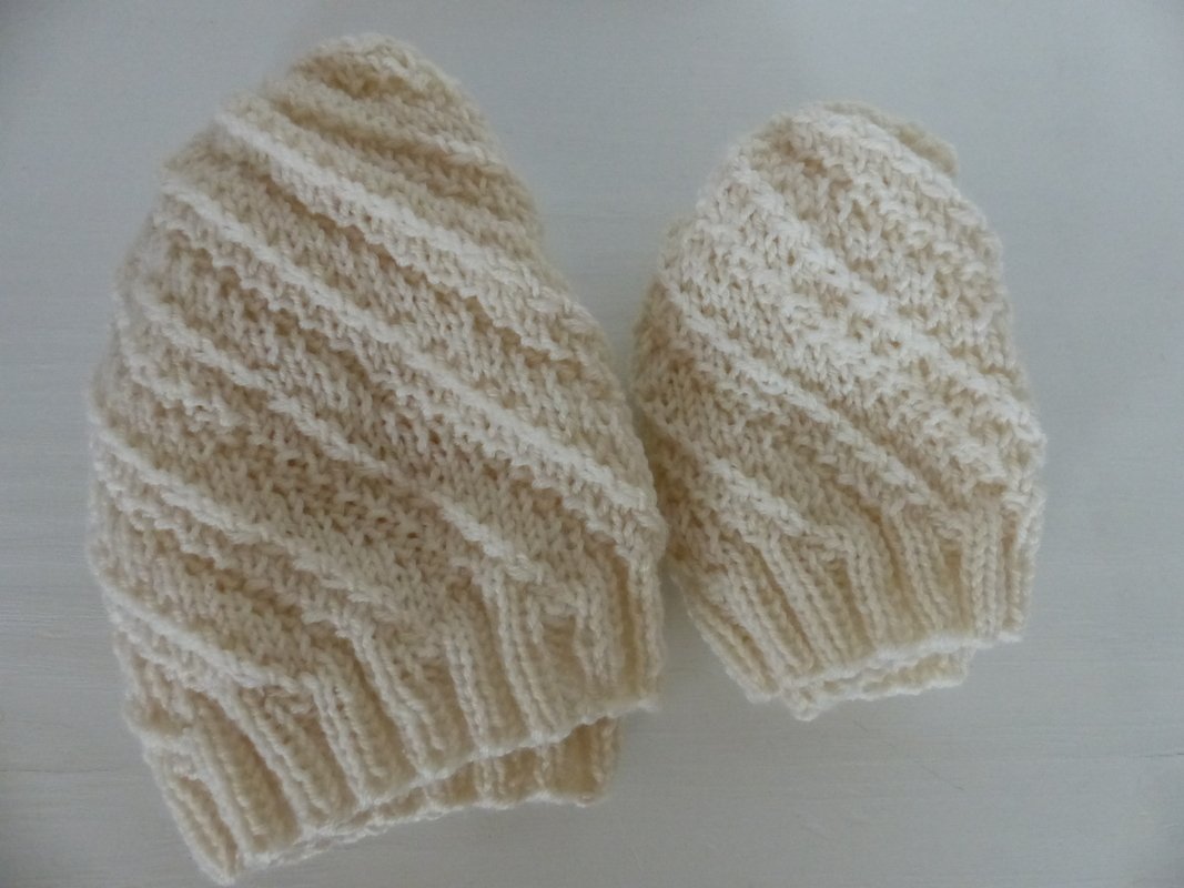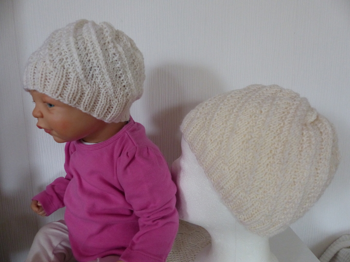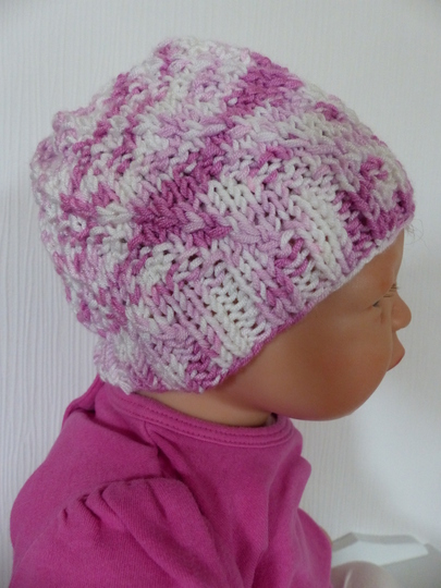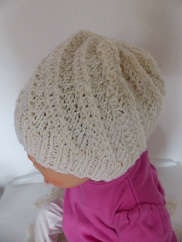 Das Muster in Spiralform und verkreuzten Maschen macht diese Mütze zum modischen Accessoire für Babys, Kinder, Damen und Herren.
