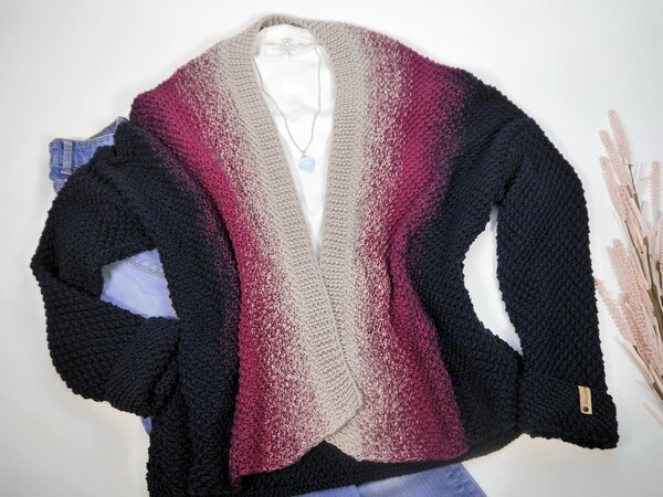 Von Beton über Brombeere bis Marine: eine kuschelweiche Strickjacke mit einem originellen Farbverlauf. Der Cardigan fällt so lässig wie außergewöhnlich, so ist der stylische Strick-Cardigan besonders vielseitig kombinierbar! Mit offener Vorderkante lässig umspielend.