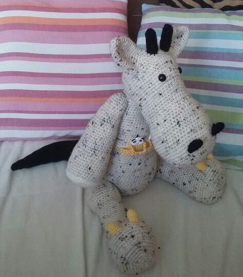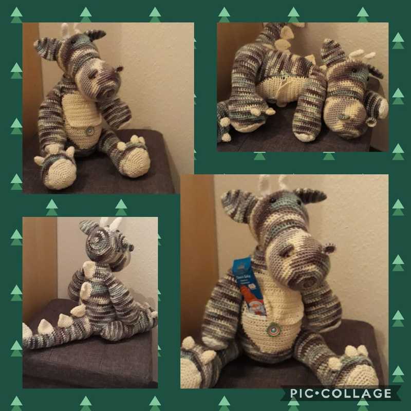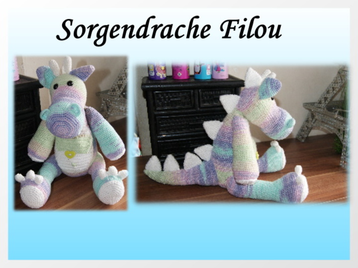 Darf ich mich vorstellen mein Name ist Fliou, Ich bin ein Sorgendrache! In meiner Tasche habe ich platz für deine Sorgen die du mir gerne erzählen darfst. Ich bin ein kleiner Drache von 31 cm je nach Wollart.