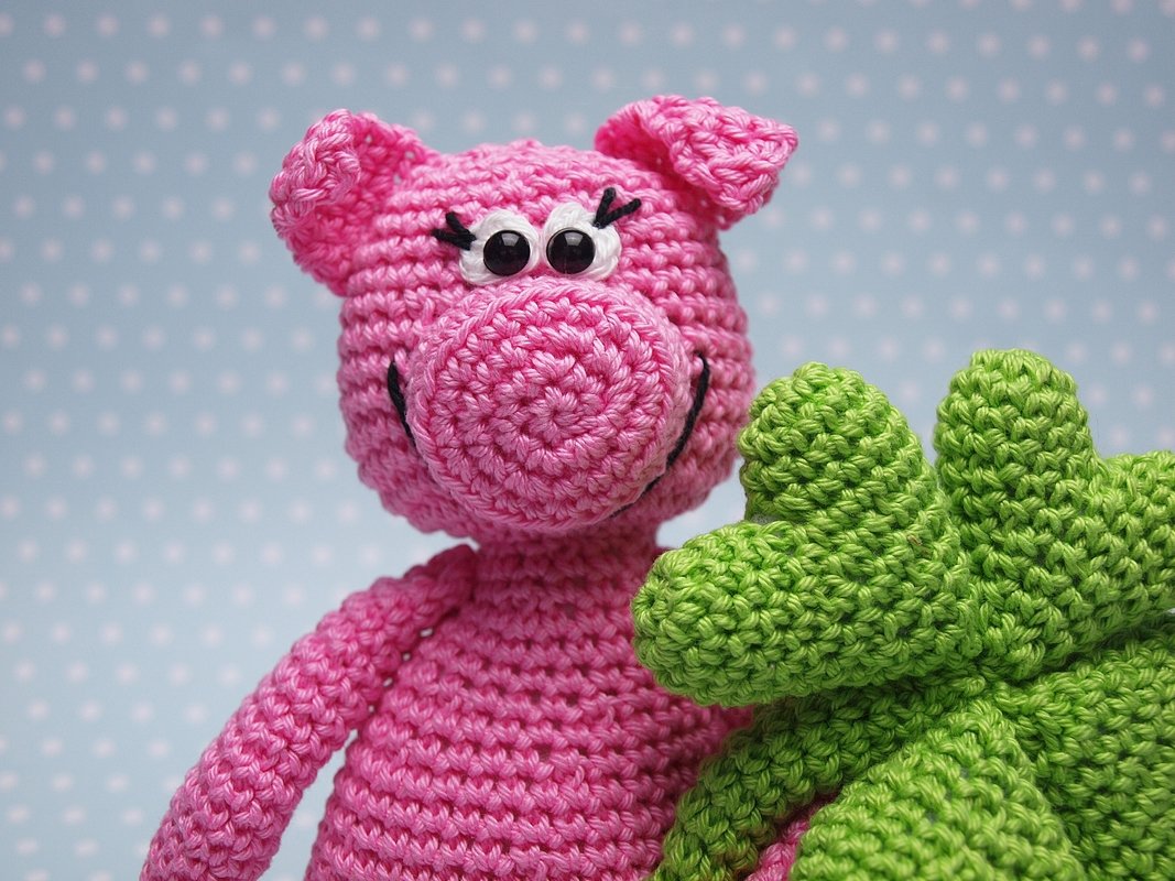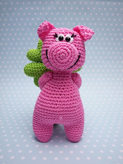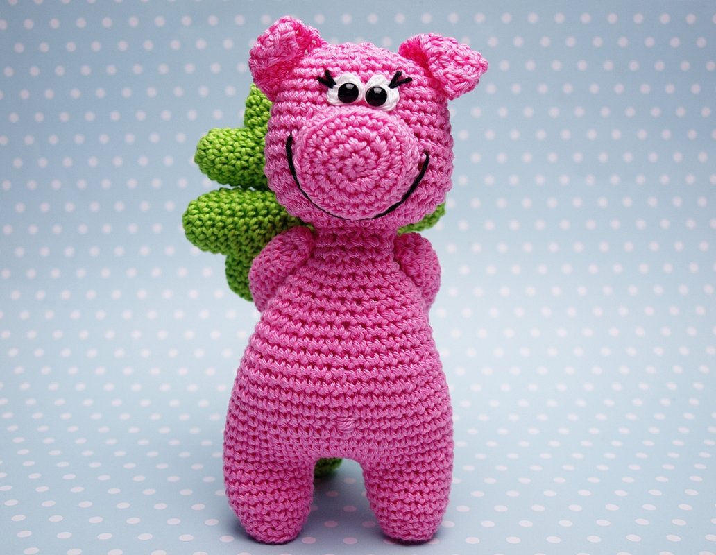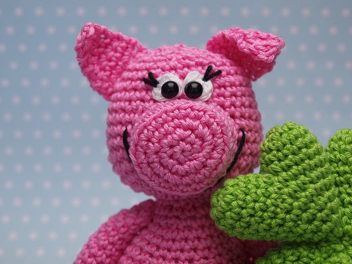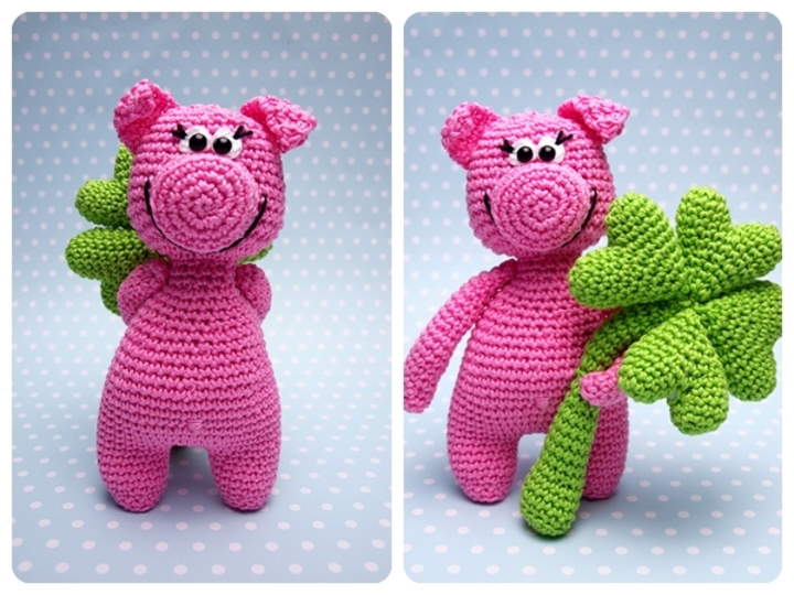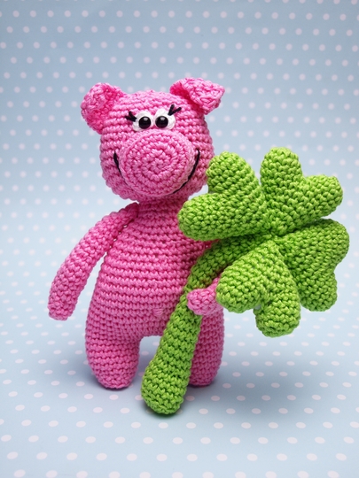 Häkelanleitung für ein Glücksschweinchen mit Kleeblatt