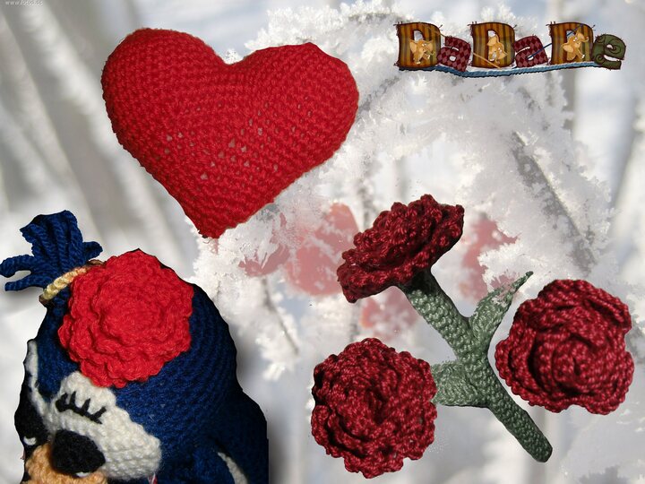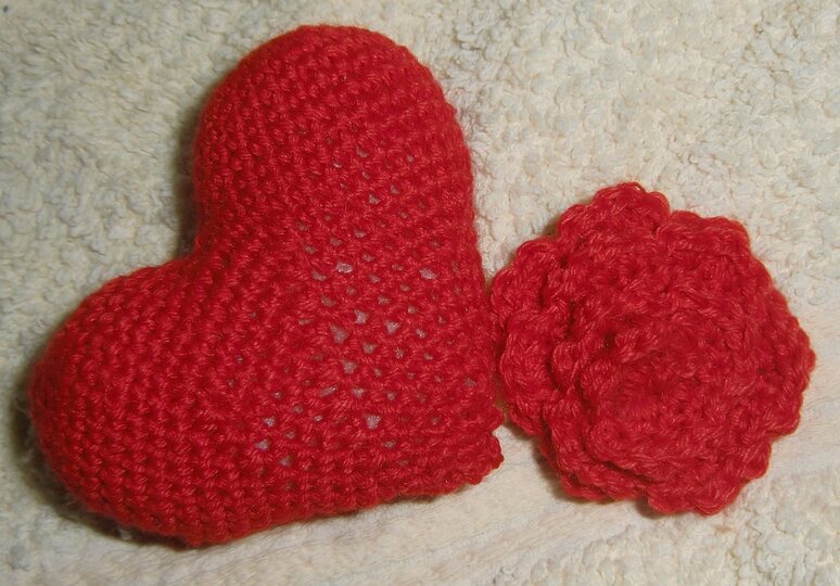 Rose im Haar und Herz; rote Wolle – Nadelstärke 2,5