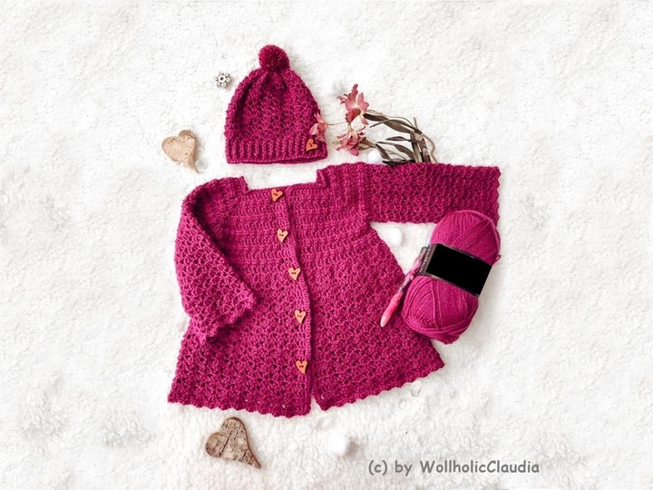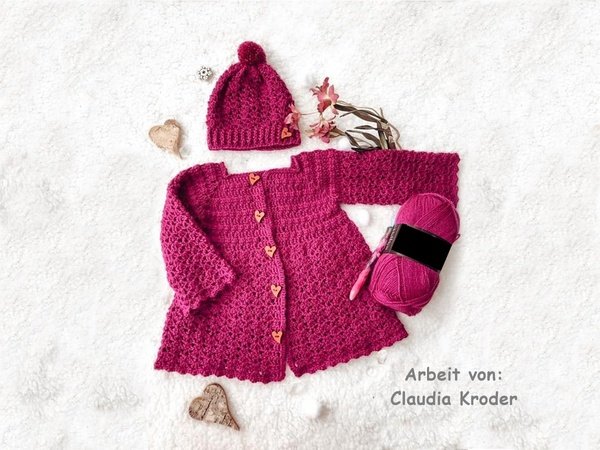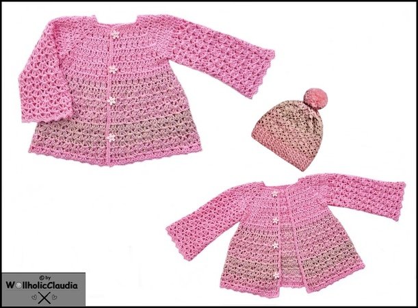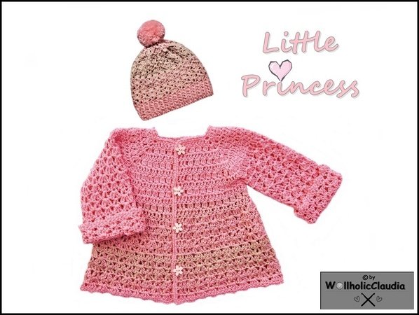 Diese wunderschöne Set Baby- oder Kinderjacke namens "little Princess" ist ganz einfach zu häkeln.