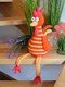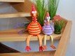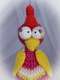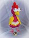 Du kannst jede Wolle verwenden die dir gefällt. Auch die Farben kannst du frei wählen. Ich habe mit Gründl cotton fun (der orangefarbene und der lila/bunte) mit Häkelnadel 3,5 mm oder Catania (der fliederfarbene) mit 2,5 mm gehäkelt. Meine Gockel sind ohne Beine ca. 20 - 30 cm hoch geworden.