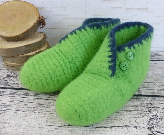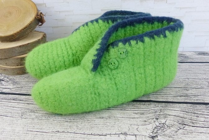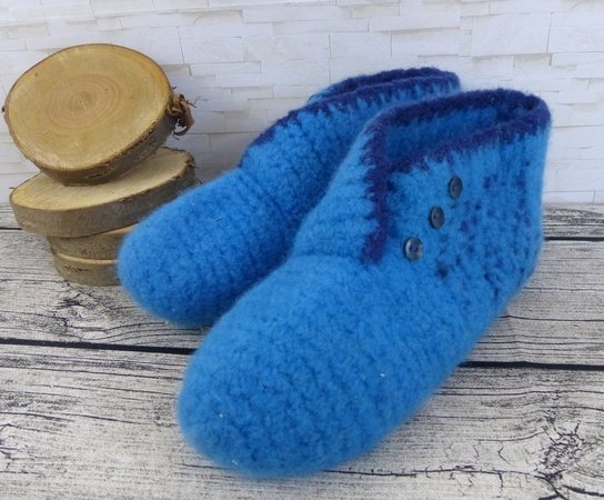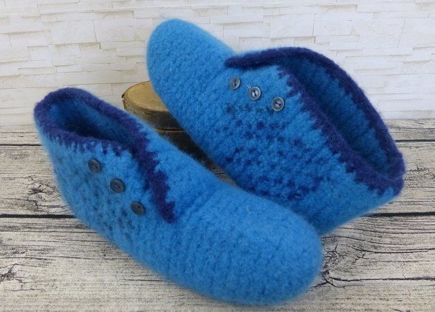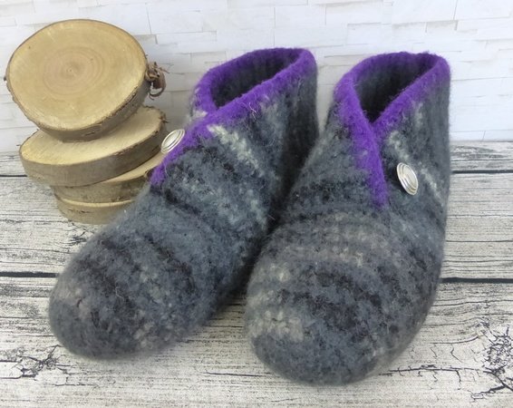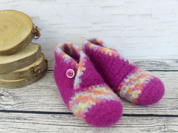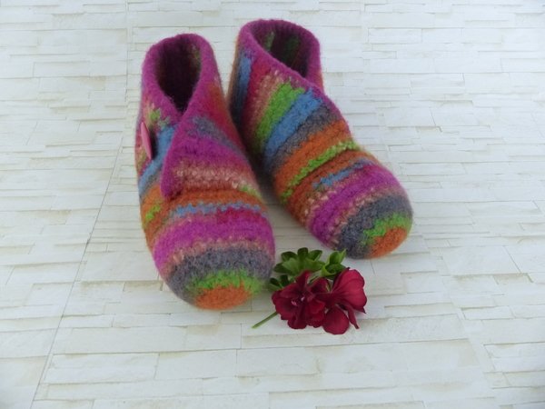 "MeiBoots" sind schöne warme Filzpuschen / Hausschuhe / Hüttenschuhe / Puschen. Die Schuhe werden gehäkelt und dann in der Waschmaschine gefilzt.