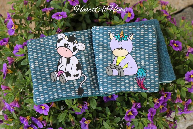 Die kleine Kuh macht sich als Plott ganz toll auf einem Memory, auf Schlüsselanhängern, als Luftballonhüllen und besonders auch auf Halstüchern.