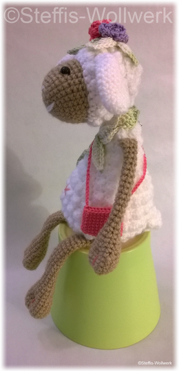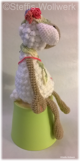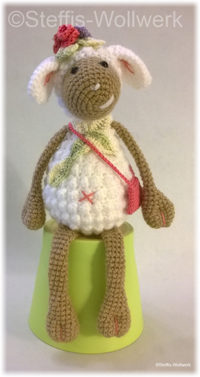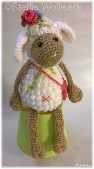 Ella das kleine Schäfchen kommt gerade von einem Sommerspaziergang über ihre Lieblingsblumenwiese zurück.
