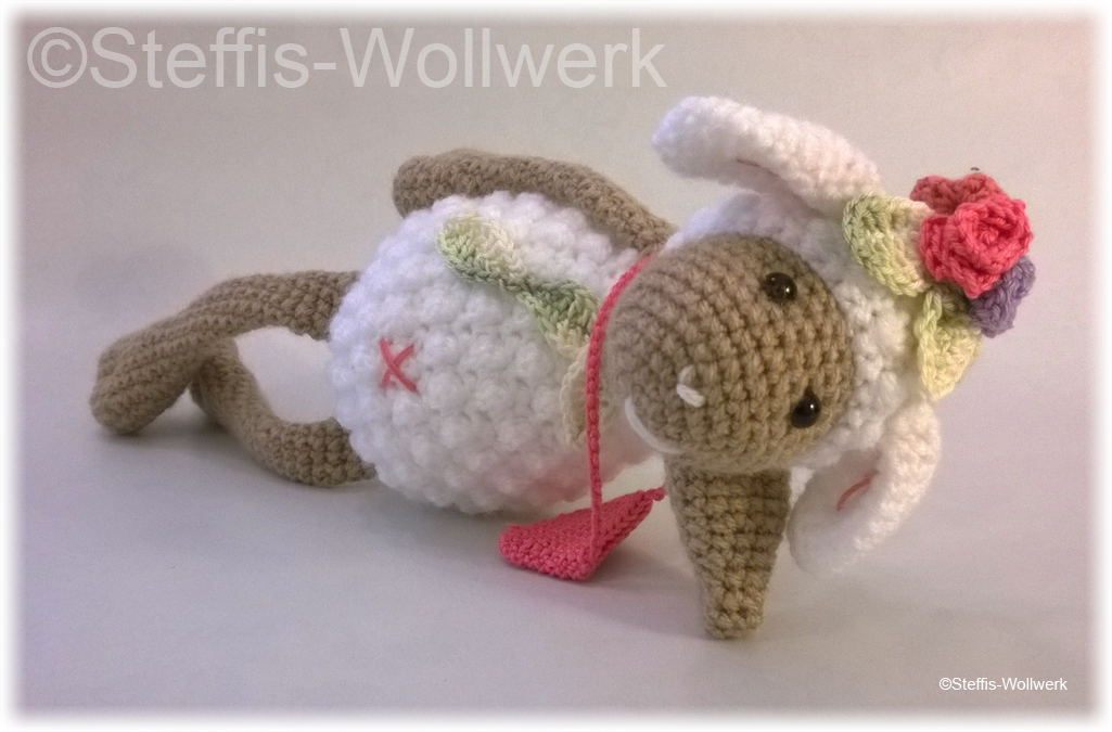 Diese Anleitung zeigt dir, wie du Ella (inklusive Deko und befüllbarer Tasche) nachhäkeln kannst.
