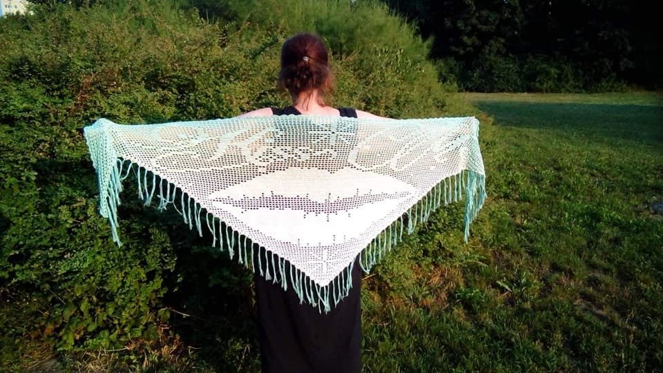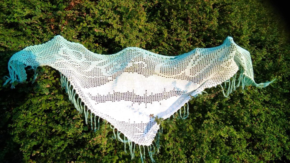 Dieses sommerlich leichte Tuch ist das Statement überhaupt und absolut anfängertauglich. Zu den Kenntnissen gehören Luftmaschen, feste Maschen und Stäbchen.