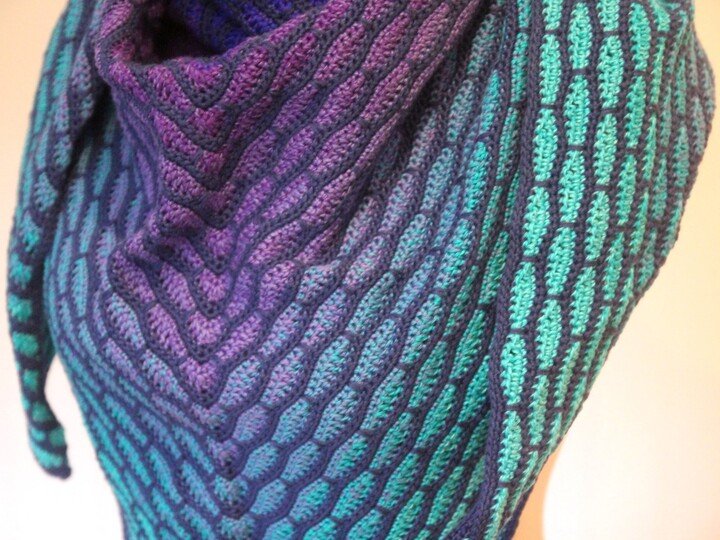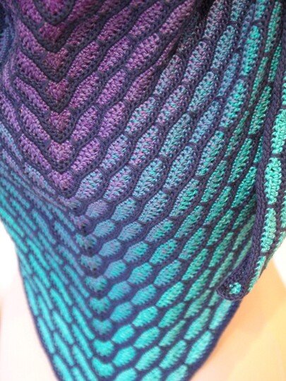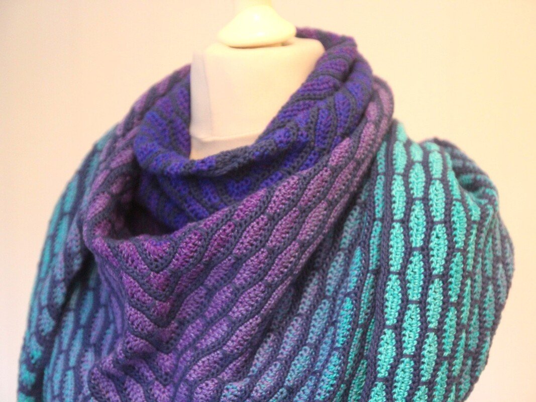 Ich wollte unbedingt ein 2-farbiges Tuch machen und hier ist es: Das Atlantis. Es ging mir schnell von der Hand, auch wenn man die Schritte bald auswendig kennt und man sich beim Häkeln in Geduld üben muss. Das Ergebnis lohnt sich auf alle Fälle und ich will das Tuch gar nicht mehr ausziehen! Gerade im Winter ist es toll zu tragen, weil das Muster so schön eng ist und wärmt.