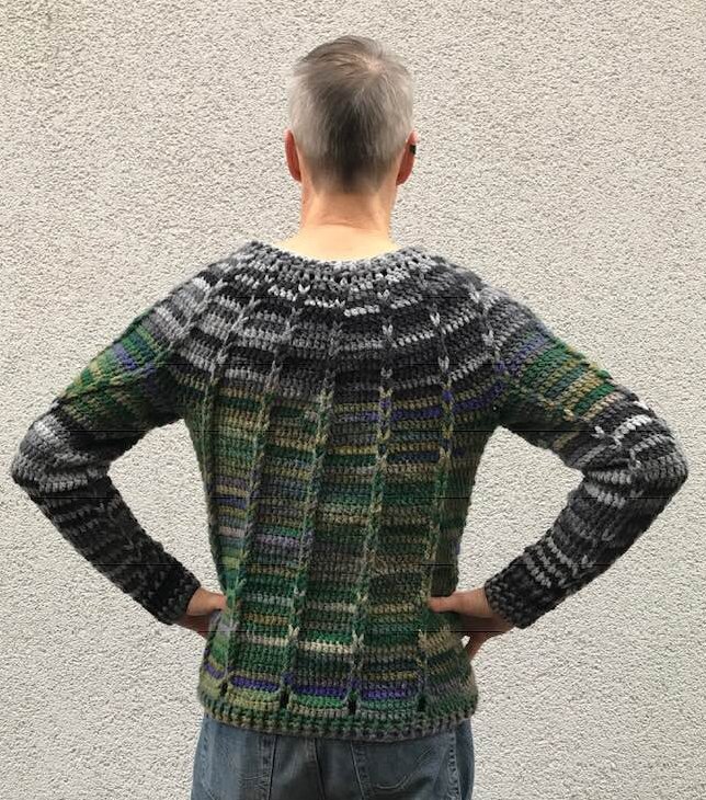 man kann den Häkelpulli "SCHATZI“ auch größer häkeln!..und für Frauen ist er natürlich auch super!
